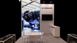 Stand aperto su 2 lati , superficie 130 mq